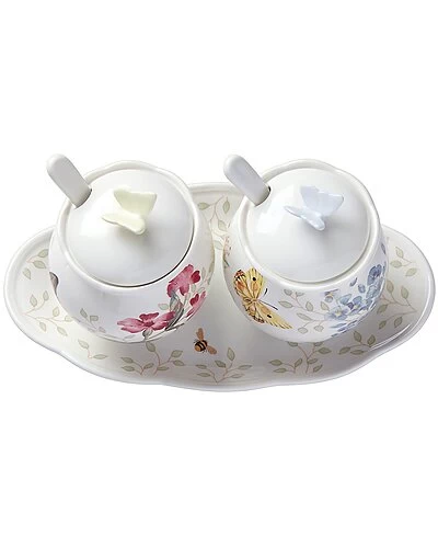 - The Butterfly Meadow 7-piece Condiment Set features the classic garden illustration on the durable white ceramic earthenware tray and servers. Both servers include spoons and a lid with a perched butterfly finial. This set is dishwasher-safe, for added convenience.