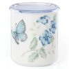 - Crafted of durable stainless steel, the Butterfly Meadow Small Insulated Food Container features double-wall insulation that is sure to keeps its contents warm for up to four hours. This item features a motif of butterflies and flowers on its sides, and a handsome blue lid. Hand washing this item is recommended.