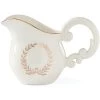 - This beautiful, four-piece place setting is crafted of stoneware with a gently scalloped border that’s accented with hand-applied tea stains. Each piece gleams with the subtle texture of scrolling beads along the edges. Plus, it’s all microwave and dishwasher safe for easy clean up and heating. Comes with one dinner plate, one accent plate, one all-purpose bowl and one mug.