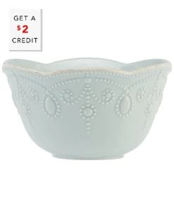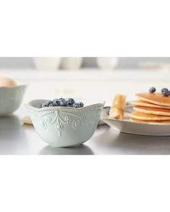 - This elegant fruit bowl, crafted of durable ice blue ceramic stoneware, includes a soft scalloped tea-stained rim with gentle dots, that adds texture and a hint of contrasting color. This item is microwave and dishwasher-safe, for added convenience.