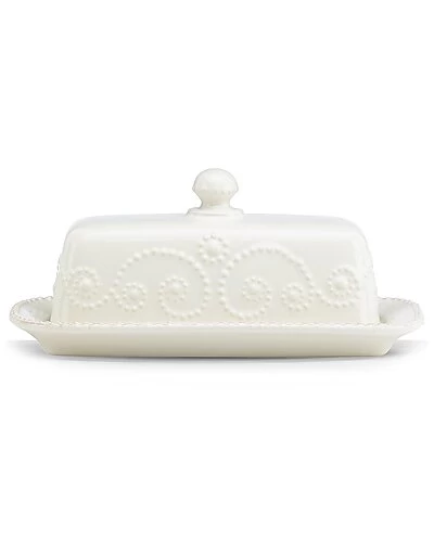 - Part of the French Perle Collection, this covered butter dish has a subtle hand-applied tea stain and a gentle swirled pattern of elegant beads for a touch of charming rural life in an everyday kitchen. Crafted from durable ceramic stoneware, this item is microwave and dishwasher-safe, for added convenience.