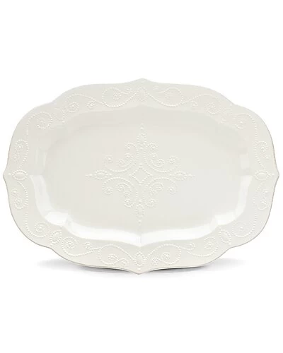 - This rustic large oval platter, crafted of durable ceramic stoneware in a crisp, clean white, includes a textured pattern of scrolled and swirled beads along its subtle hand-applied tea-stained rim. This item is microwave and dishwasher-safe, for added convenience.
