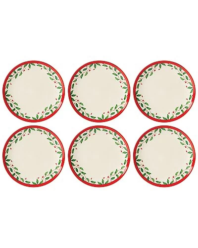 - Design details: set the table for the holidays. New to the holiday collection is this 6-piece set of accent plates. Each one is decorated in the iconic holly motif and is finished with a bright red rim.