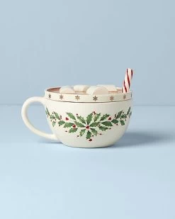 - Design details: how sweet is this cute little candy dish? shaped like a cup of hot cocoa, it features unique details like realistic-looking marshmallows, a candy cane stirrer, golden star accents and the iconic holly and berry leaf motif from the holiday collection. Lift the lid to store all of your favorite candies, chocolates and other treats.