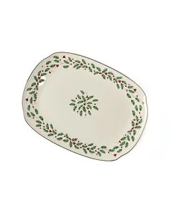 - Design details: this spacious holiday serving platter includes elegant 24-karat gold accents and is framed in a holly motif with a beautiful wreath at the center. It’s perfect for serving appetizers, large meals or sweet treats.