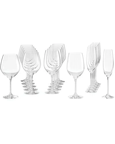 - Your favorite Tuscany Classics glasses now come in a convenient 18-piece set. It’s the perfect collection to give and get for hosting holiday celebrations or building out your china cabinet. Crafted of durable and elegant non-lead European crystal, the Tuscany Classics 18-piece glass set comes in an assorted collection of six champagne flutes, six white wine glasses and six red wine glasses. They are completely break-resistant and dishwasher safe]