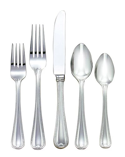 - 5 piece stainless steel flatware set with miniscule beaded border and teardrop handles