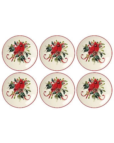 - Design details: let this cheerful cardinal companion join the party. He’s perched on a pinecone in the hoping to get a peck of what’s on your plate. Featuring bold holiday ribbons and realistically natural holly accents.